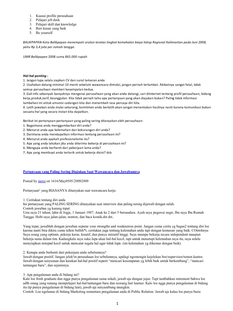 Dengan demikian anda bisa menyiapkan jawaban dengan baik sehingga memberi kesan positif bagi perusahaan.