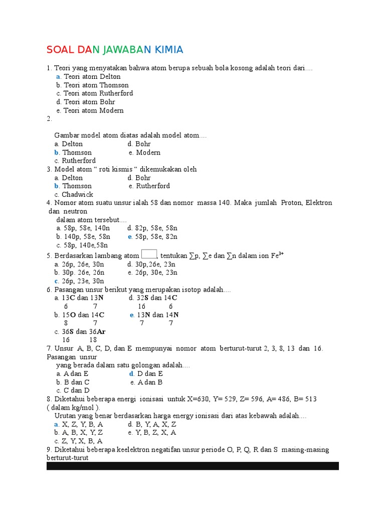 Contoh Soal Struktur Atom Beserta Jawabannya - Berbagi ...